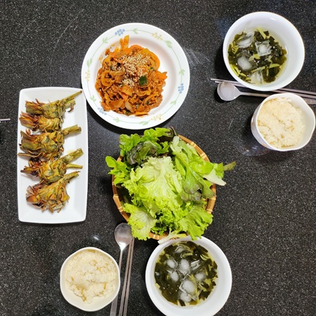 상추쌈제육볶윽아티초크 구이