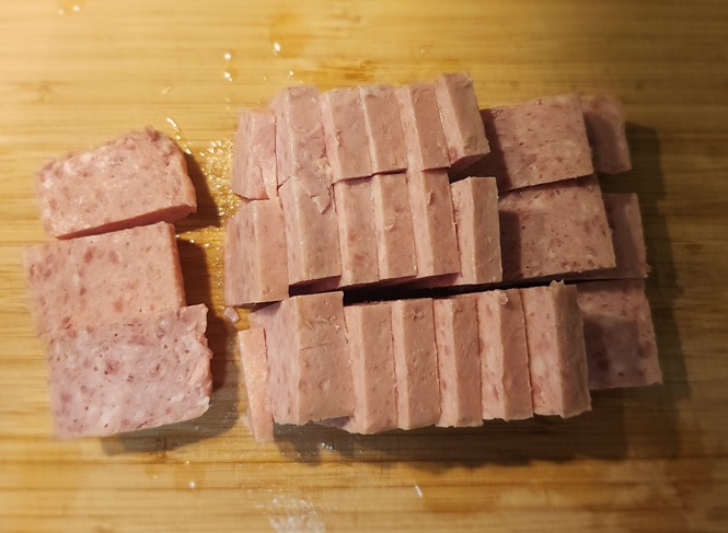 스팸 1통을 두부와 비슷한 크기로 썰어주세요