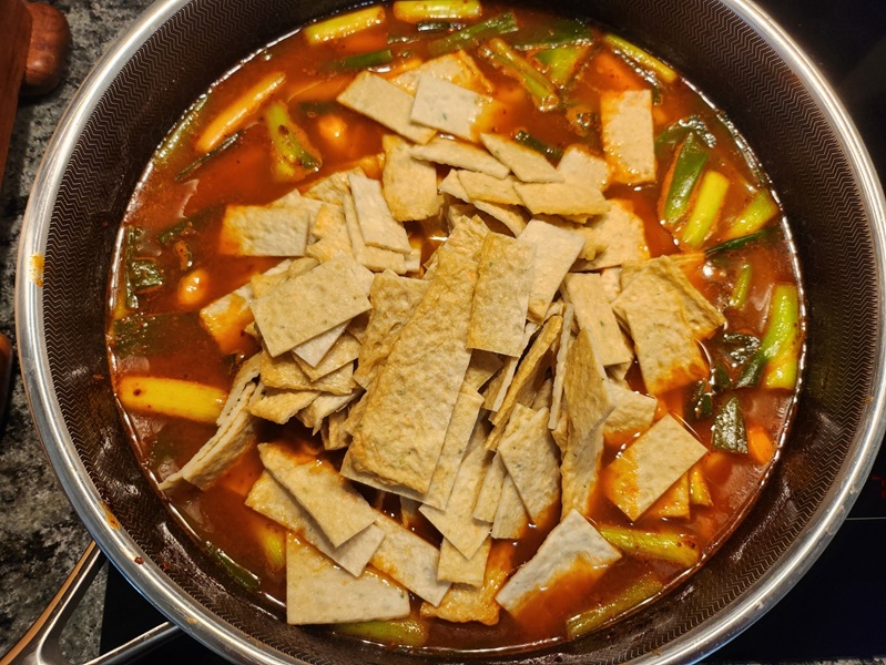 육수가 팔팔 끓으면 썰어둔 오뎅을 함께 넣어주세요