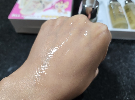 손등에 톡 떨어뜨리면 아주 가볍게 바를 수 있는 딱 전형적인 앰플 재질입니다.