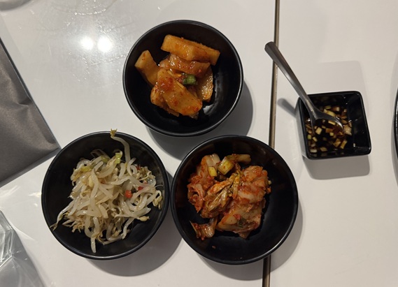 밑반찬은 김치 2가지와 숙주나물입니다.
