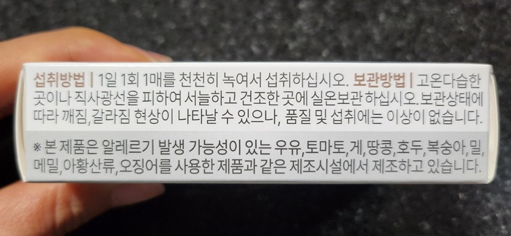 입 천장에 붙여서 살짝 녹여 드세요