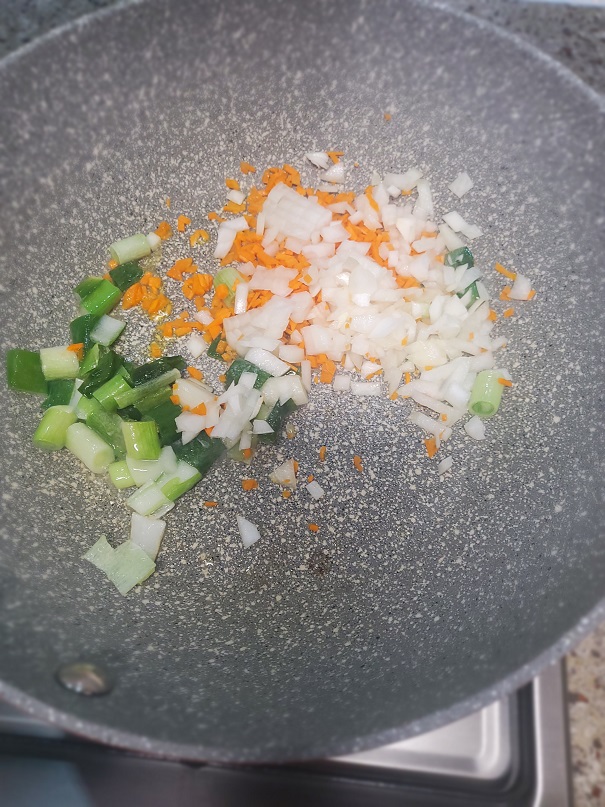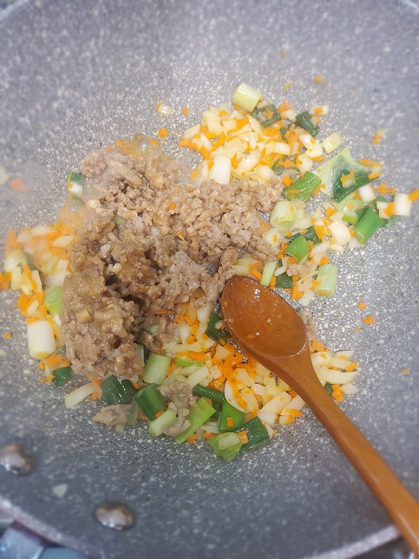파향이 올라오면 채소를 넣어서 같이 볶아주세요
