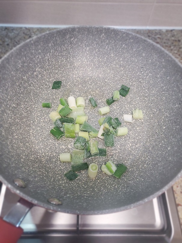 기름에 썰어둔 파를 익혀주세요