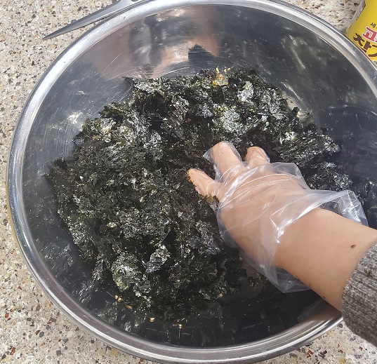김에 참기름을 바르다보면 김 가루가 날리기 마련