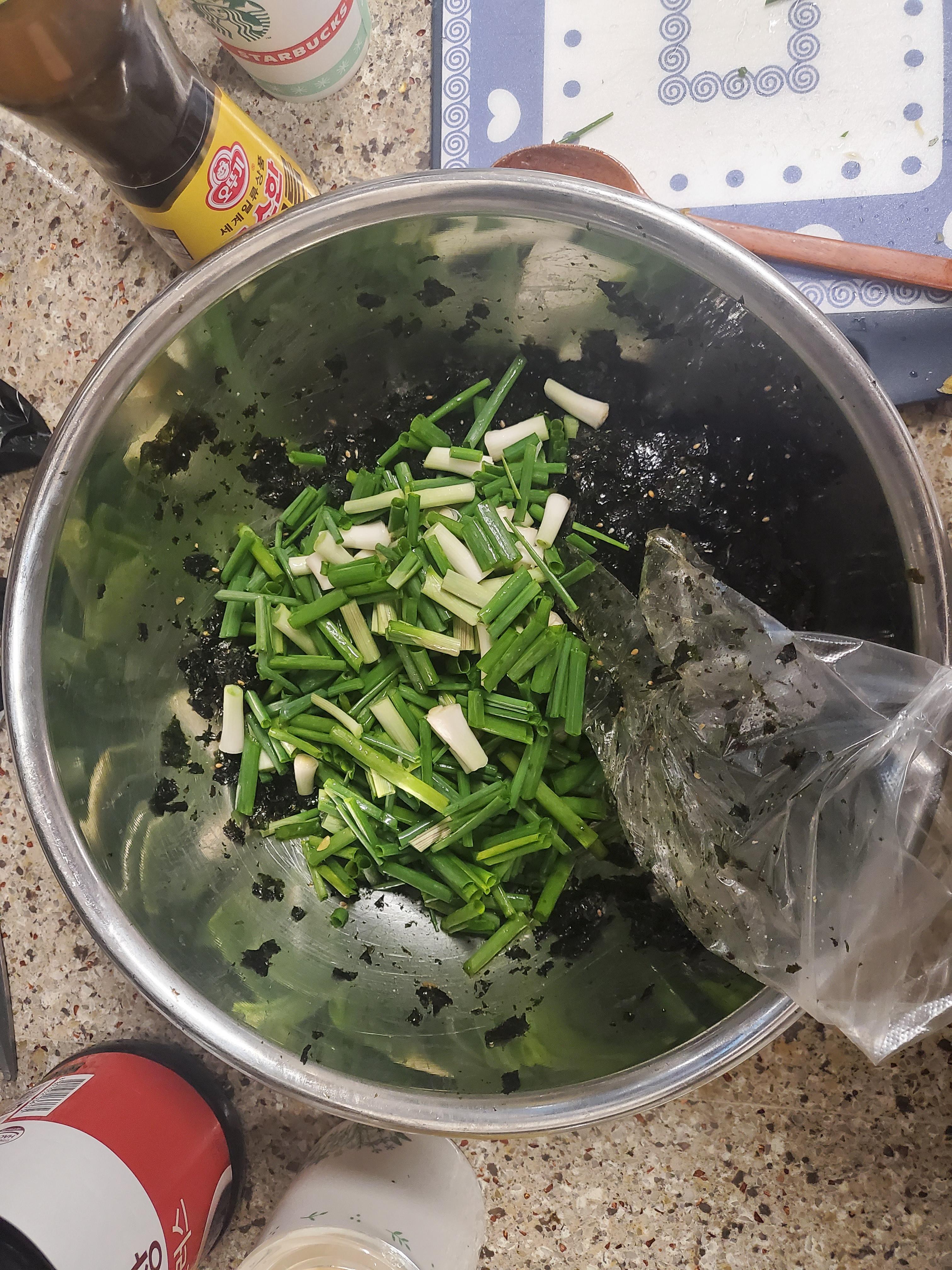 어느정도 무쳐졌다면 쪽파를 투하~~~