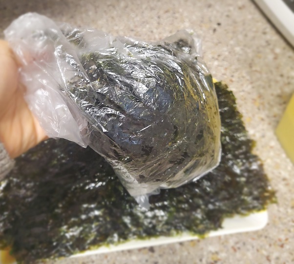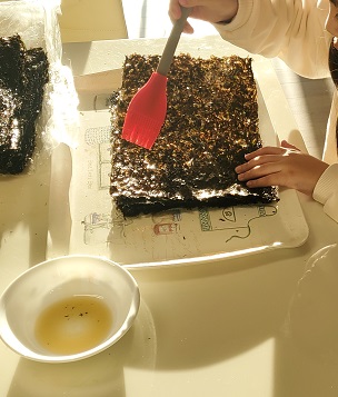 내가 마른김을 굽는 동안 아이가 참기름을 발랐기 때문에