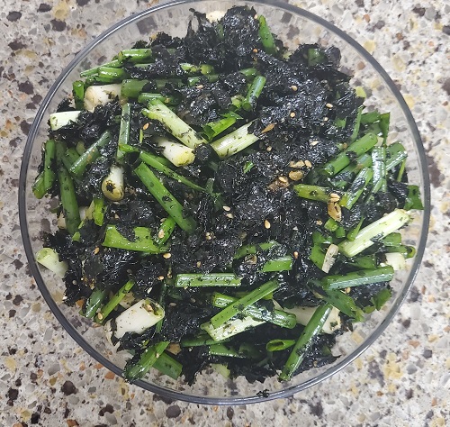 다만 간장이 너무 적으면 마른김 상태로 무쳐지지 않으니